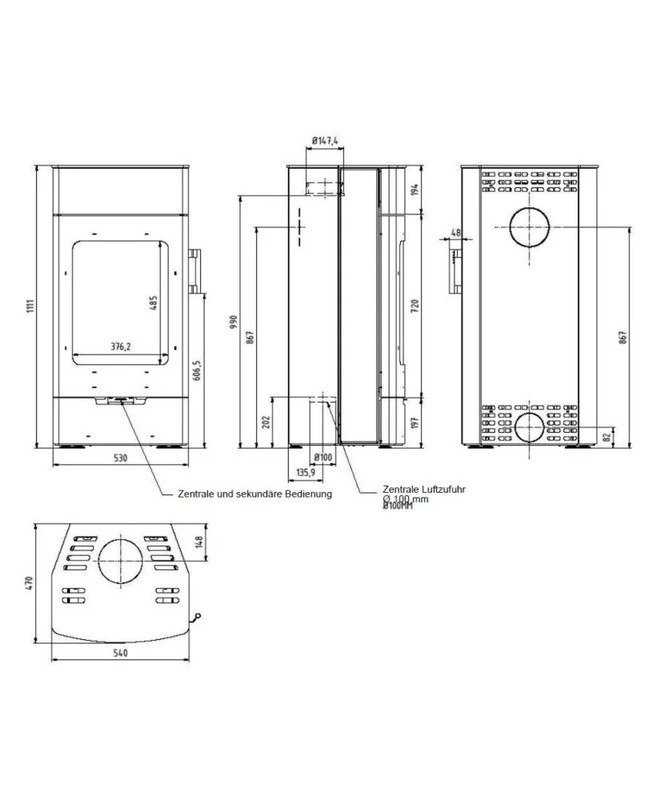Apport d’air externe : Ø 100 mm (sans homologation DIBt)